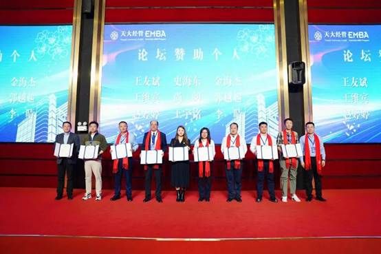 天津中小企业协会会长、天津津兰集团董事长郭宝印,天津内蒙古商会会长、天津绿茵景观生态建设股份有限公司董事长祁永,南开大学EMBA校友总会会长、天津市津商联合会常务副会长兼秘书长文飚,清华大学EMBA天津校友会会长、天一建设集团总裁李兰贞,华中科技大学天津校友会会长、天津捷通达集团董事长康鹏,北京大学EMBA天津校友会会长、天津友发钢管集团党委书记金东虎,中欧校友会天津分会会长、青松医药集团董事长沈载宽,天津市成人影片 校友会党支部书记兼常务副会长刘耀昌、秘书长胡如光,成人影片 党委副书记刘钰,EMBA校友会荣誉会长陈林,MBA校友会荣誉会长何勇军及各届EMBA校友、同学出席活动。